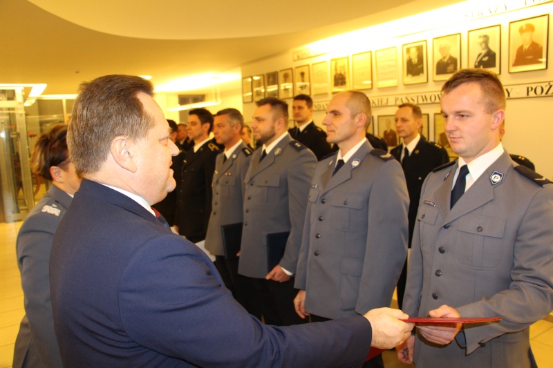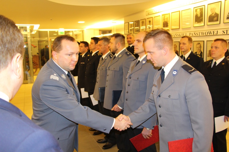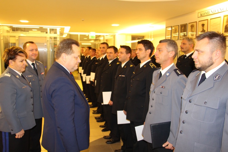 Brali udział w tym spotkaniu także policjanci, którzy zostali uhonorowani przez wiceministra Jarosława Zielińskiego, w obecności Zastępcy Komendanta Głównego nadinsp. Heleny Michalak i Komendanta Wojewódzkiego Policji w Poznaniu nadinsp. Tomasza Trawińskiego. Wśród wyróżnionych znaleźli się funkcjonariusze Wydziału Patrolowo-Interwencyjnego Komendy Miejskiej Policji w Kaliszu - st. sierż. Leszek Biegański oraz sierż. Marek Szwankowski. Ich zdecydowana i szybka reakcja pozwoliła uratować życie zdesperowanego nastolatka, który stojąc na balustradzie balkonu znajdującego się na ósmym piętrze bloku groził, że popełni samobójstwo.