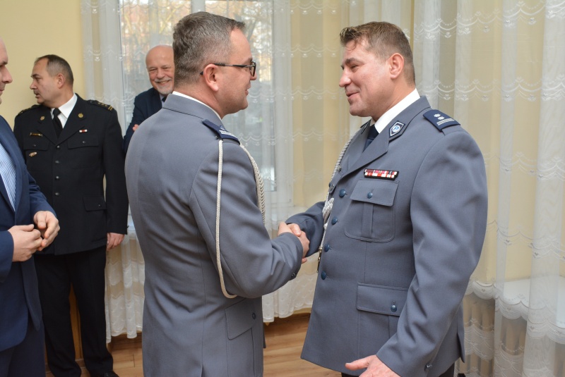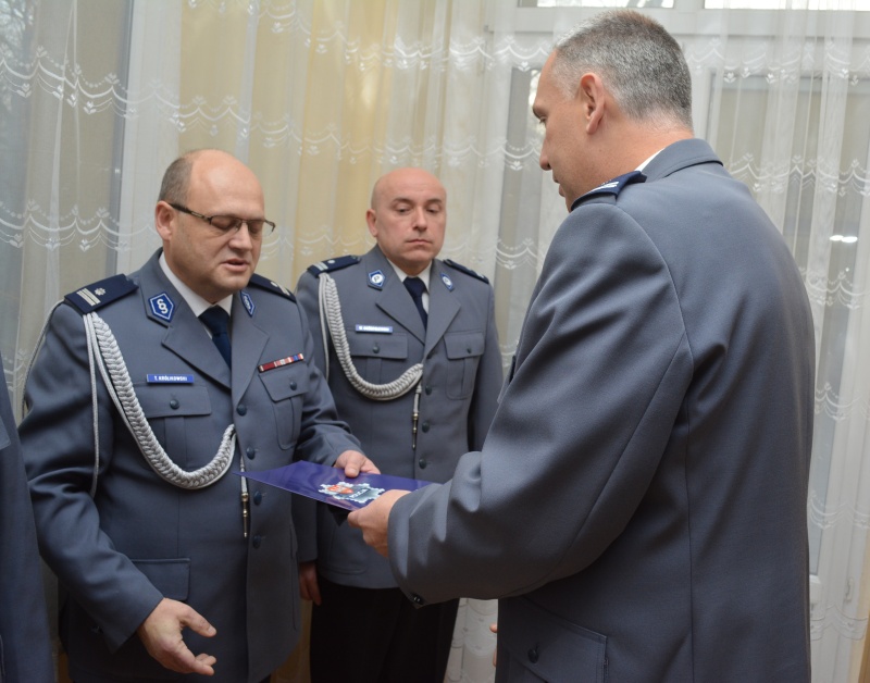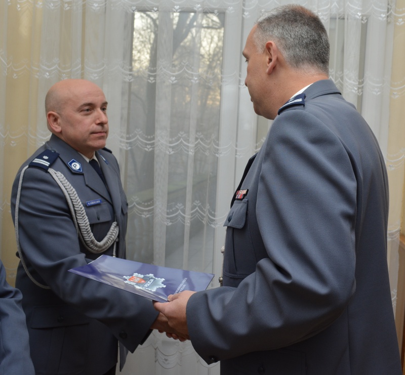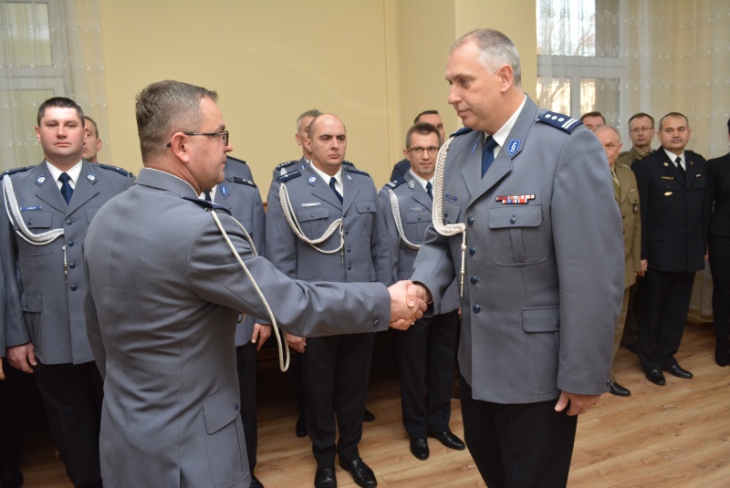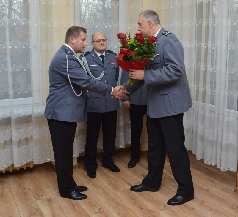 Podczas uroczystej zbiórki insp. Dariusz Bieniek podziękował odchodzącemu zastępcy mł.insp. Andrzejowi Harasiowi za dotychczasową współpracę i życzył mu sukcesów na nowym stanowisku Komendanta Powiatowego Policji w Ostrzeszowie.