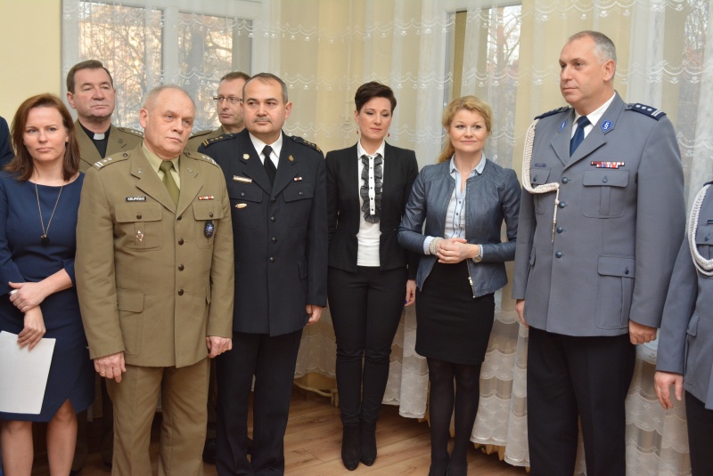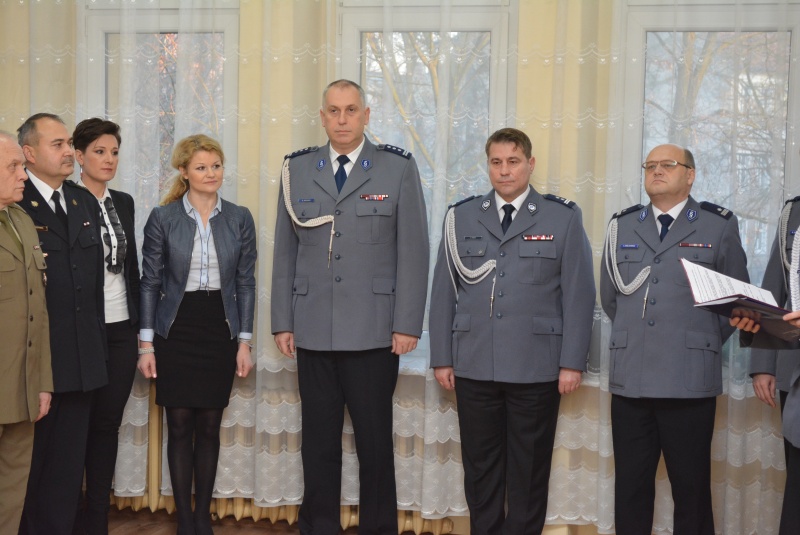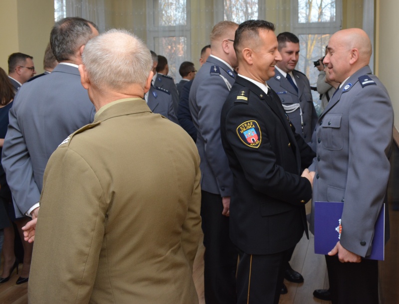 W uroczystości, która odbyła się dziś na terenie Komendy Miejskiej Policji w Kaliszu uczestniczyli: Wiceprezydent Miasta Kalisza Pani Karolina Pawliczak, Ksiądz płk Tadeusz Pałuska, Wojskowy Komendant Uzupełnień w Kaliszu ppłk Andrzej Krupiński, Zastępca Komendanta Miejskiego Państwowej Straży Pożarnej w Kaliszu st. bryg. Marek Burzyński, Komendant Placówki Straży Granicznej w Kaliszu mjr Robert Kaczmarek, Komendant Straży Miejskiej Kalisza Dariusz Hybś, Naczelnik Wydziału w Kaliszu Zarządu w Poznaniu Centralnego Biura Śledczego Policji kom. Michał Denkowski, Przewodnicząca Komisji Prawa, Porządku Publicznego oraz Samorządu Osiedlowego Pani Magdalena Spychalska oraz Dyrektor Ośrodka Sportu Rehabilitacji i Rekreacji w Kaliszu Pan Mirosław Przybyła, a także kadra kierownicza kaliskiej jednostki.