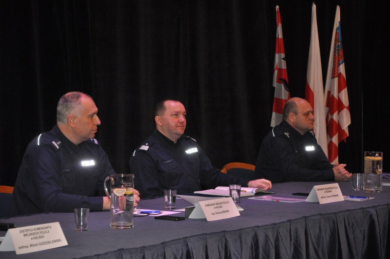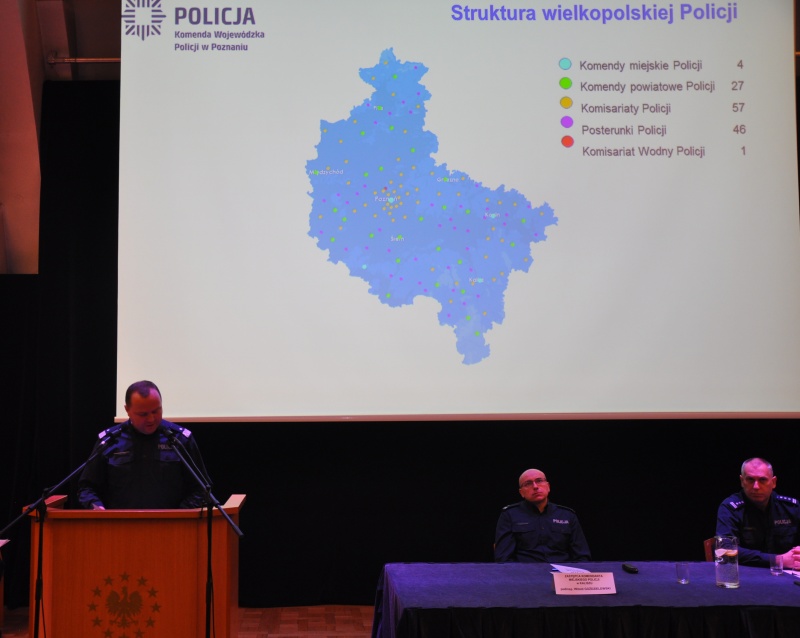 Komendant Wojewódzki Policji w Poznaniu nadinsp. Tomasz Trawiński podczas swojej prezentacji przedstawił ocenę stanu bezpieczeństwa na terenie garnizonu wielkopolskiego, a także omówił priorytetowe kierunki działania na rok bieżący. Na zakończenie swojego wystąpienia szef wielkopolskiej Policji podziękował zebranym na sali policjantom oraz pracownikom cywilnym za całoroczną owocną pracę podkreślając jednocześnie, że był to dobry rok dla kaliskiej Policji.
