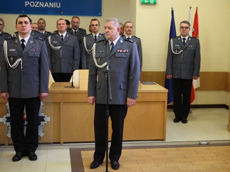 W gmachu Komendy Wojewódzkiej Policji w Poznaniu 27 lutego br. odbyło się uroczyste ślubowanie 45 nowo przyjętych policjantów i policjantek. Ślubowanie odebrał Komendant Wojewódzki Policji w Poznaniu nadinsp. Tomasz Trawiński, który jako pierwszy powitał ślubujących, ich najbliższych oraz zaproszonych gości. Wśród nich byli: Jerzy Fleming – Radca Wojewody Wielkopolskiego, Hieronim Węclewski - Dyrektor Wydziału Zarządzania Kryzysowego i Bezpieczeństwa Urzędu Miasta Poznania, Paweł Kurosz – Dyrektor Wydziału Bezpieczeństwa i Zarządzania Kryzysowego Powiatu Poznańskiego, ksiądz prałat Stefan Komorowski – kapelan KWP w Poznaniu, podinsp. Andrzej Szary – Przewodniczący Zarządu NSZZP województwa wielkopolskiego. Podczas uroczystej zbiórki obecna była również kadra kierownicza wielkopolskich jednostek Policji i najbliżsi nowo przyjętych policjantów.