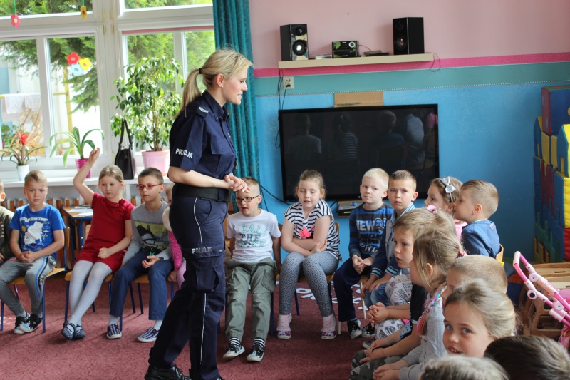 Mundurowi omówili wiele ważnych przepisów oraz zasad ruchu drogowego. Przede wszystkim przypomnieli wszystkim dzieciom, jak ważne jest używanie elementów odblaskowych oraz przechodzenie przez jezdnię w miejscu wyznaczonym. Przypominali najmłodszym najważniejsze numery telefonów do służb ratowniczych. Uczulali również w jaki sposób zachować się w przypadku kiedy same pozostają w domu, a do drzwi puka nieznajomy.