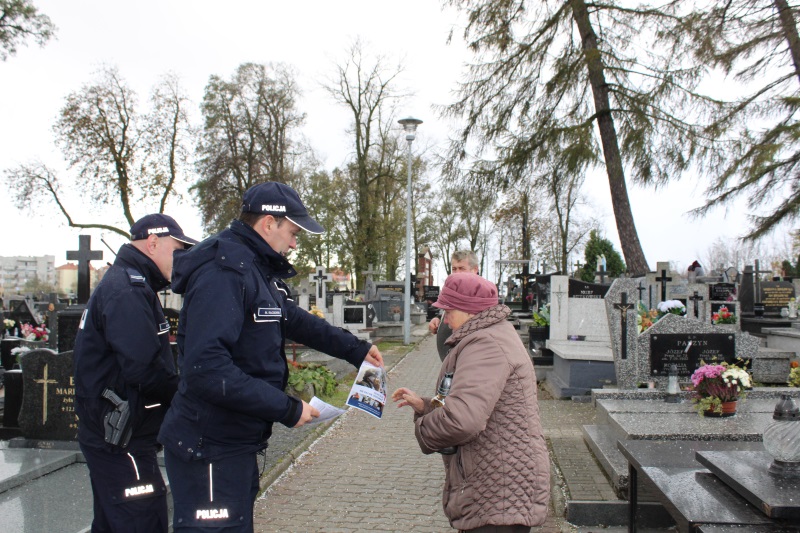 Dzielnicowi przypominali również, aby w Dniu Wszystkich Świętych, wybierając się na cmentarz, zabierać ze sobą tylko to, co jest nam niezbędne. Wszyscy powinni pamiętać, aby nie zabierać dużych kwot pieniędzy, czy dokumentów, które nie będą nam potrzebne. Niestety często pochłonięci kupowaniem kwiatów, zniczy oraz robieniem porządków na grobach najbliższych, nie zwracamy uwagi na to co się dzieje wokół nas. Stajemy się nieostrożni, a przestępcy bez skrupułów wykorzystują nadarzającą się okazję.