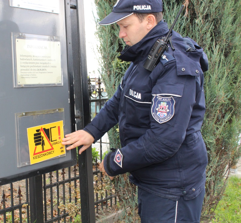 Aby przypomnieć mieszkańcom miasta o zagrożeniach, w okresie poprzedzającym Dzień Wszystkich Świętych, na cmentarzach pojawili się dzielnicowi. Policjanci podczas rozmów z osobami porządkującymi groby najbliższych, przypominali by nawet na chwilę nie zostawiać bez nadzoru wartościowych przedmiotów. Panią, które przyszły na cmentarz same, nawet, jeśli odchodzą od nagrobka tylko na chwilę, radzili aby zabierały ze sobą torebki.
