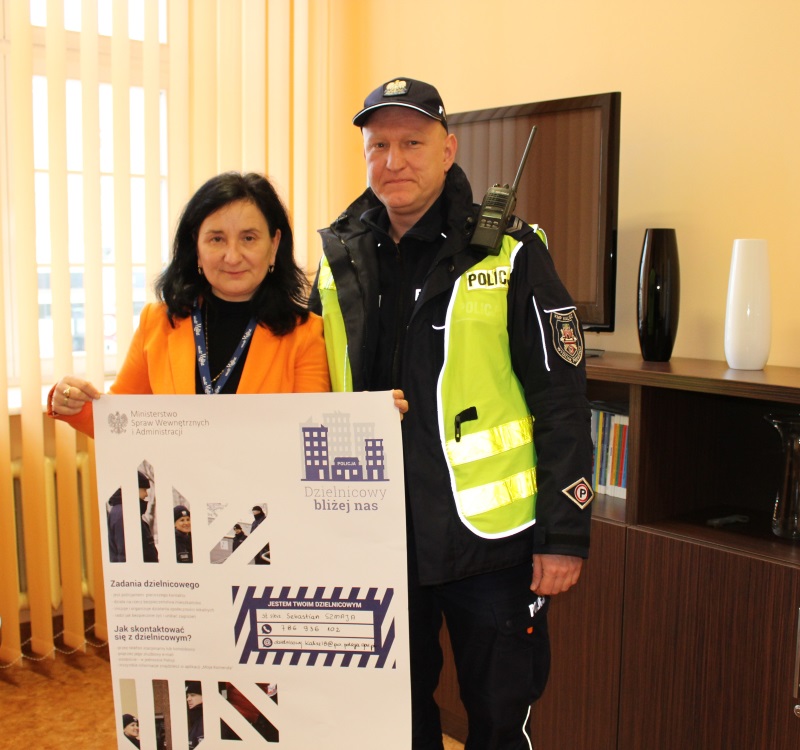 Dzielnicowi z Komendy Miejskiej Policji w Kaliszu spotykali się z dyrektorami szkół podstawowych. Podczas wizyt, na ręce przedstawicieli placówek oświatowych przekazali plakaty, na których znajdują się dane kontaktowe do poszczególnych dzielnicowych. Afisze zostały umieszczone w miejscach ogólnodostępnych, dzięki czemu rodzice odwiedzający szkołę z łatwością poznają policjanta, któremu podlega dany rejon.
