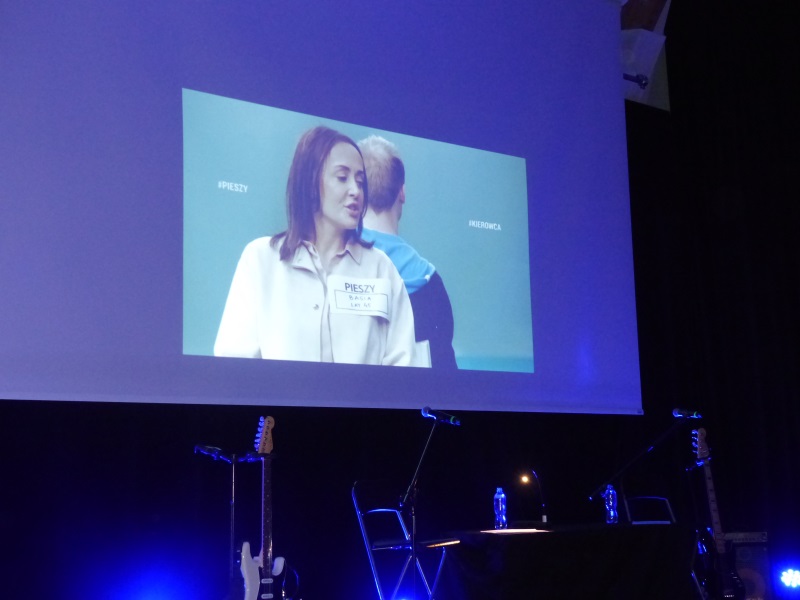 W dalszej części spotkania głos zabrał Naczelnik Wydziału Ruchu Drogowego Komendy Miejskiej Policji w Kaliszu - nadkom. Przemysław Czarnecki, który przedstawił widzom aktualne dane dotyczące zdarzeń drogowych na naszym terenie. W swoim wystąpieniu omówił również zachowanie na drogach kierujących pojazdami i pieszych. Podróżującym samochodem przypomniał o obowiązku korzystania z pasów bezpieczeństwa i montażu fotelików dla dzieci. Podkreślił jak ważne jest poszerzanie swojej wiedzy z zakresu Prawa o Ruchu Drogowym. Wśród pieszych propagował noszenie elementów odblaskowych nie tylko obowiązkowo, po zmierzchu poza obszarem zabudowanym ale zawsze gdy czujemy, że mogą one uchronić nas przed wypadkiem.