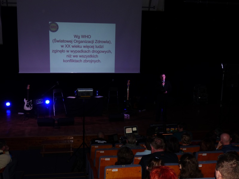 Tegoroczne spotkanie rozpoczął Pan Maciej Bednik – ekspert w dziedzinie bezpieczeństwa ruchu drogowego. Podczas swojego wystąpienia omówił stan bezpieczeństwa na polskich drogach oraz przybliżył dane obrazujące ilość zdarzeń drogowych zaistniałych w minionych latach. Największe wrażenie na osobach siedzących na widowni wywarły informacje dotyczące ilości ofiar śmiertelnych na drogach. Statystyki pokazują, że w latach 1992 - 2012, w wypadkach drogowych na terenie naszego kraju straciło życie 121 tys. osób, a 1,3 mln. zostało rannych.