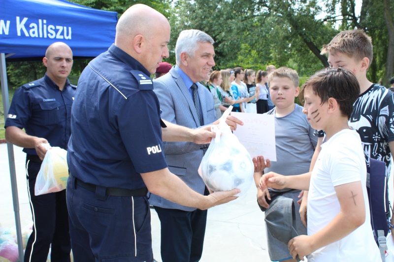 Każdy uczestnik otrzymał upominek oraz dyplom za udział w rajdzie. Nagrody ufundowane przez Urząd Miejski w Kaliszu wręczyli wspólnie Wiceprezydent Miasta Kalisza Tomasz Rogoziński, Zastępca Komendanta Miejskiego Policji w Kaliszu mł.insp. Witold Goździelewski, Naczelnik Wydziału Spraw społecznych i Mieszkaniowych UM w Kaliszu Janusz Sibiński, Zastępca Naczelnika Wydziału Prewencji KMP w Kaliszu podkom. Paweł Tomczyk, Zastępca Komendanta Hufca ZHP Kalisz hm Bartłomiej Sobieszczański oraz Komendor klubu HKŻ dh. Robert Papuziński.