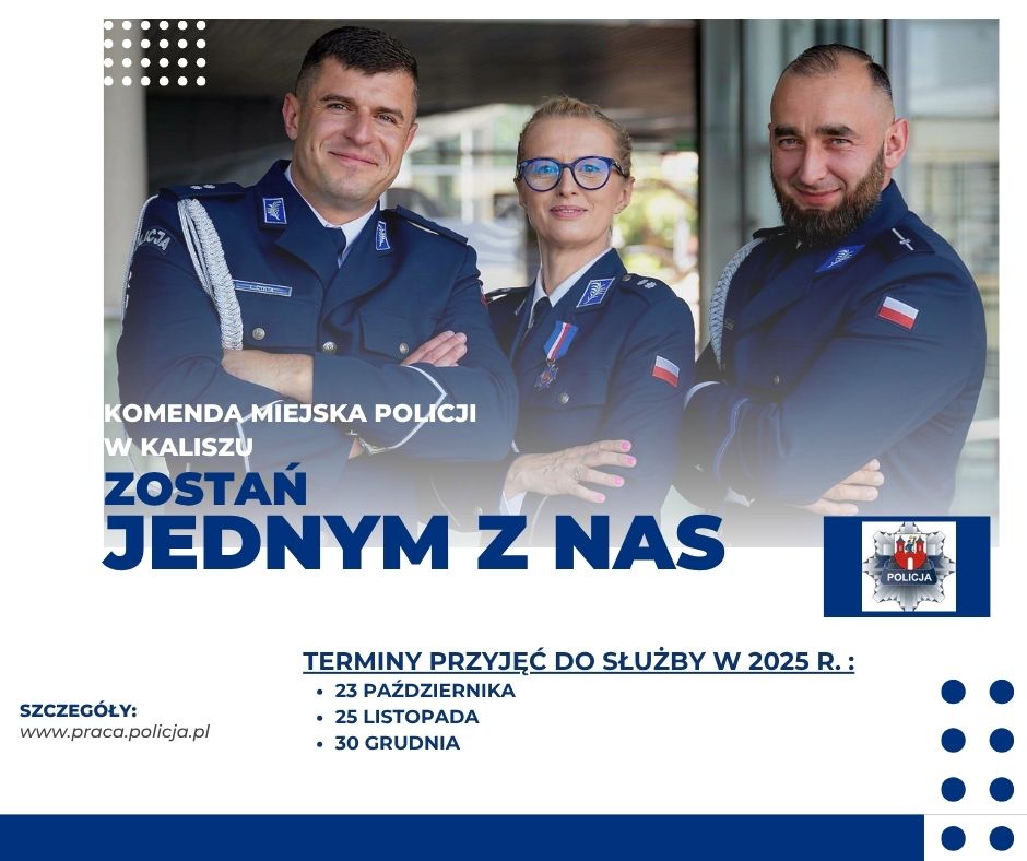 Trwa rekrutacja do służby w Policji na terenie województwa wielkopolskiego. Dobór odbywa się w trybie „ciągłym”. Osoby zainteresowane wstąpieniem do służby w wielkopolskiej Policji zachęcamy do zapoznania się z zasadami rekrutacji. Najbliższy termin rozpoczęcia służby w Policji został wyznaczony na dzień 23 października 2025r.