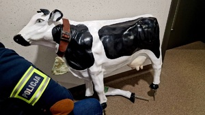 Wczoraj oficer dyżurny Komendy Miejskiej Policji w Kaliszu otrzymał zgłoszenie dotyczące kradzieży. Nieznany sprawca ukradł 80 centymetrową figurę krowy, która stała przed jedną z kaliskich firm. Przedstawiciel firmy wycenił wstępnie straty na kwotę 2500 złotych.