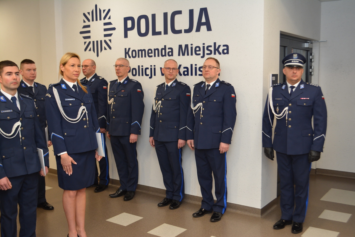 Uroczysta zbiórka rozpoczęła się od złożenia meldunku Komendantowi Miejskiemu Policji w Kaliszu mł. insp. Romanowi Brussowi przez dowódcę uroczystości nadkom. Pawła Tomczyka. Następnie szef kaliskich policjantów przystąpił do wręczania aktów mianowania awansowanym policjantom.