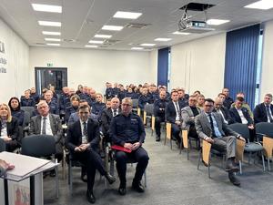 Komendant Miejski policji w Kaliszu kończąc swoje wystąpienie przedstawił plany i priorytety działań na rok 2026.